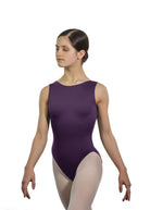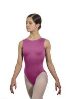 This uniquely designed seamless boatneck tank leotard showcases our flattering high cut Maya legline to enhance the length of the dancer's legs.