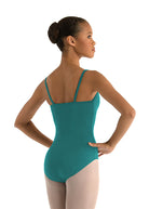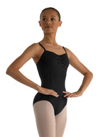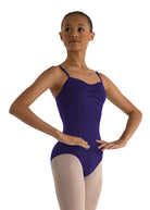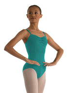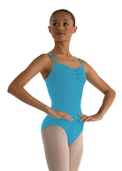 With front princess seams, a straight mid-back, a sophisticated empire panel, and exquisitely placed gathers along the bust, this camisole style flatters dancers of all ages.