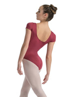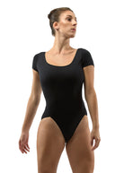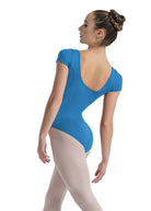 A stylish update to a classic short sleeved leotardTori features a broad, seamless, square neckline and square mid-back.