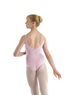 Capucine is a classic camisole leotard with ruched front accent and wide mid-low V-back, perfect for class or dress code and for dancers of all ages.