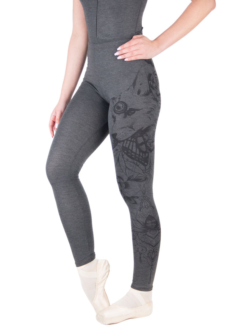 A stunning print inspired by traditional Indian tattoos winds its way down the left leg of these heather grey leggings for a unique look.
