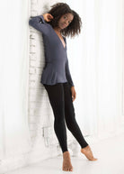 Sayaka is a refined and comfortable wrap-style sweater made from luxuriously Soft Bamboo fabric.