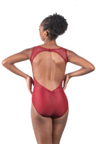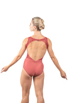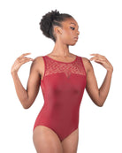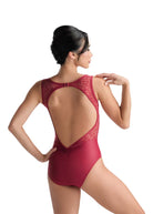 Feminine lace and a wide open back create the perfect harmony in this tank-style leotard.