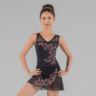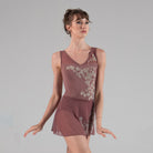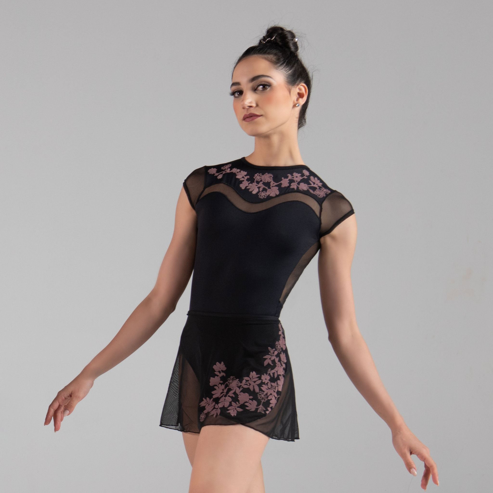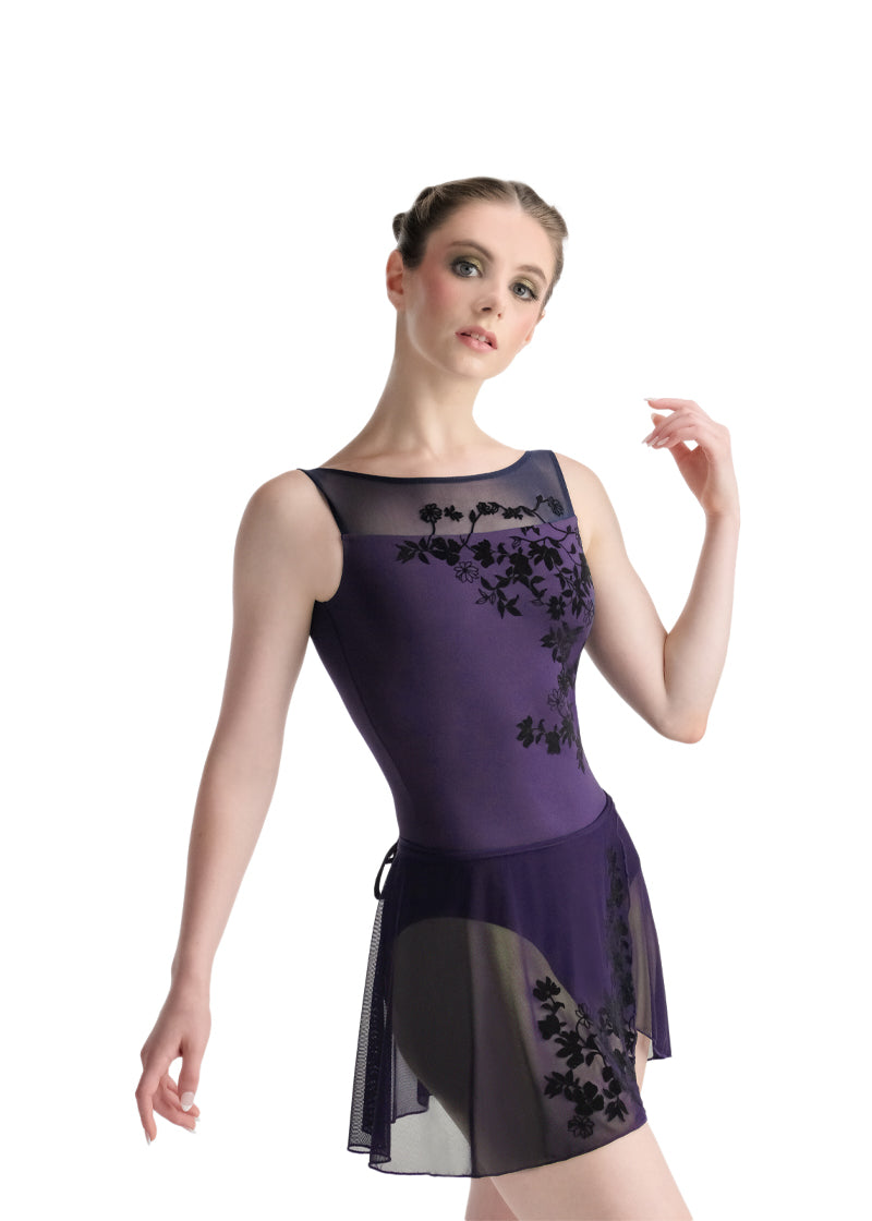 Matching the elegant Victorian design of Adéle leotard, Léonie features vines and flowers of velvety flock embossing growing along the front edge of this wrap skirt for gorgeous effect.